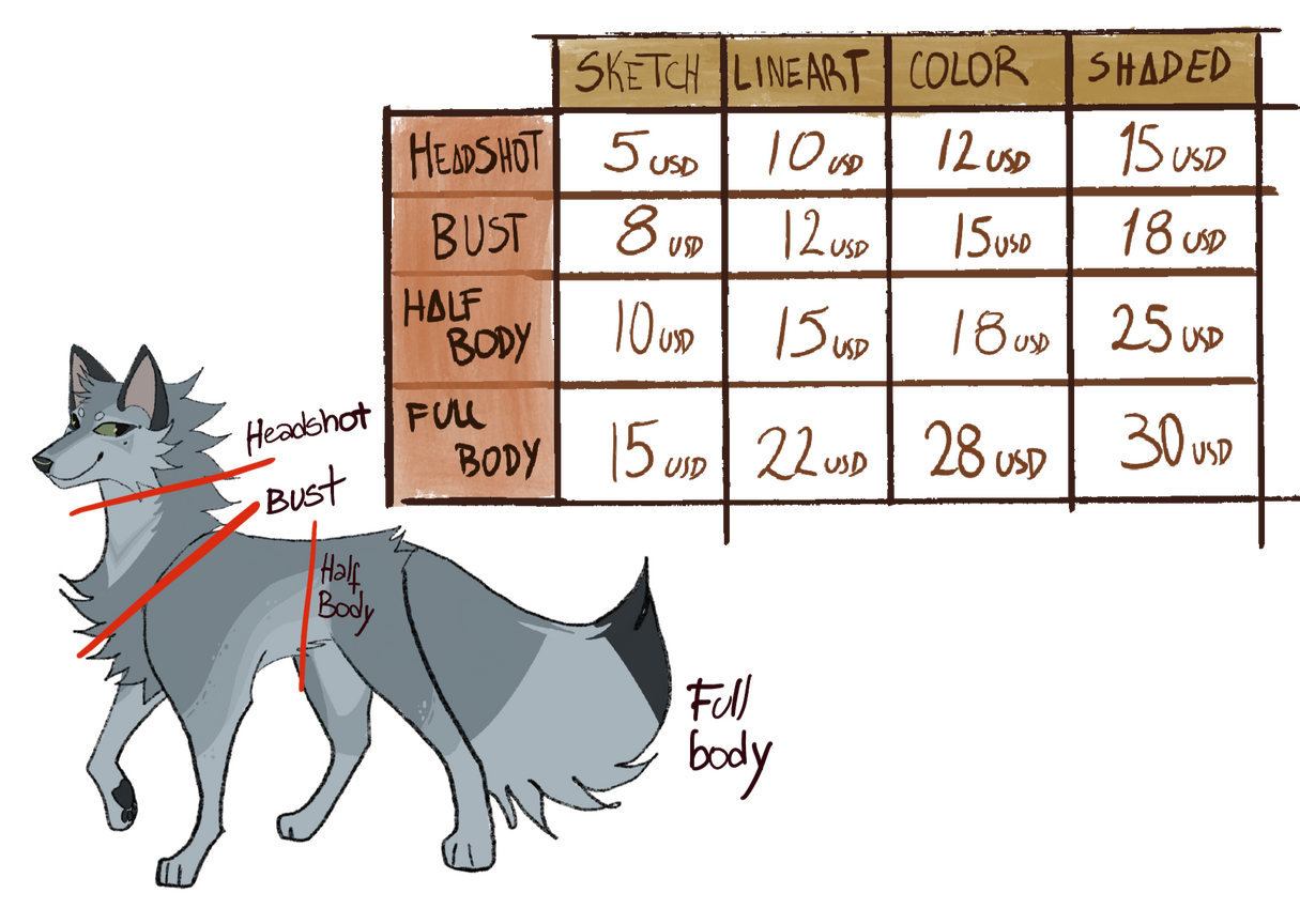 The following drawings are examples of my work + prices. If you want to see more examples feel free to check my Instagram :D (@Vickdepgon)